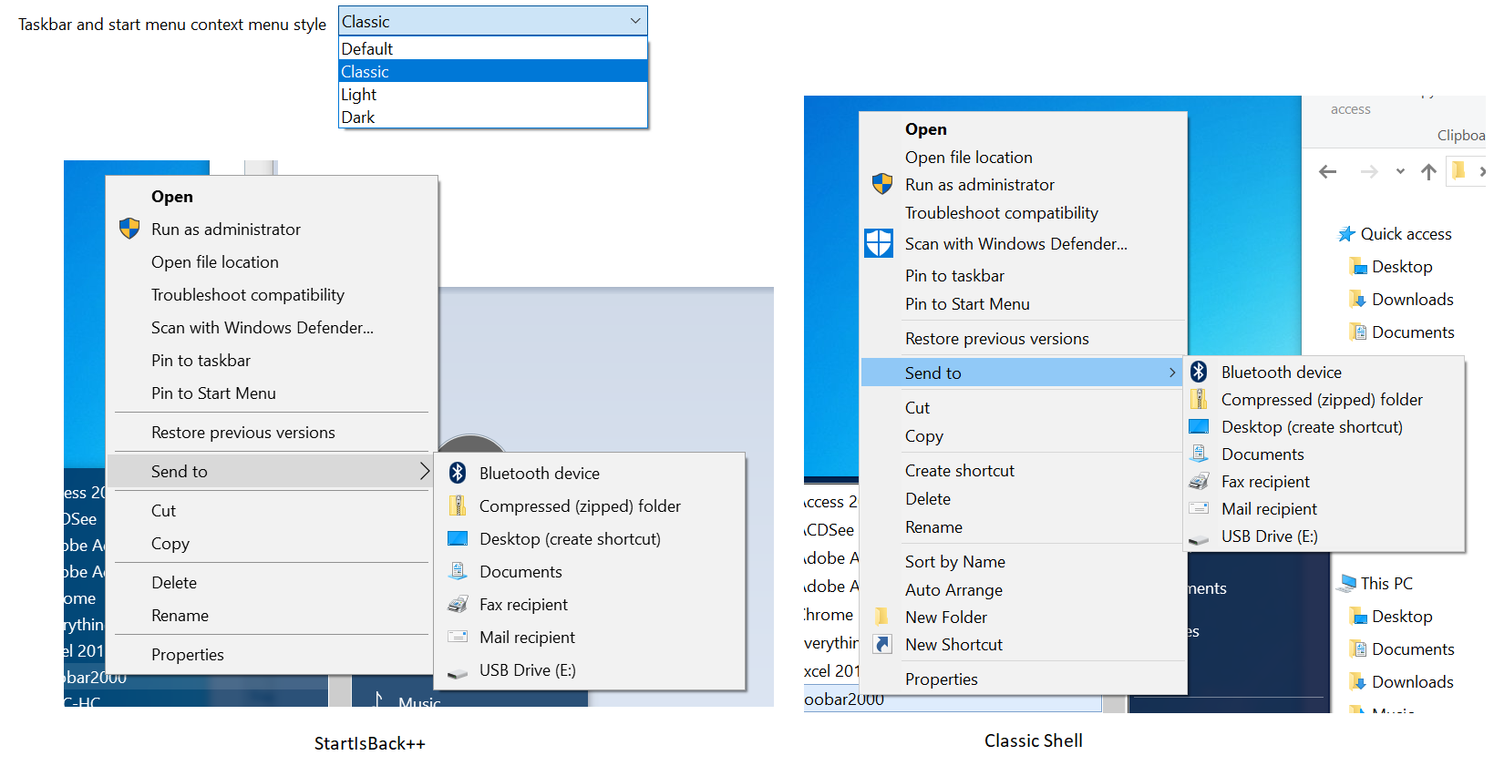 Thanks for reply! Besides the black background context menu there is also a "light" version (as called in startisback++), which is just like the desktop context menu in Windows 10 -- not that big as the black one, but still has more spacing than "classic" that makes it look slightly better on high DPI (personal opinion). StartItBack++ gives an option to choose between classic/light/dark, for my setup, 150%, light really gives me the best balance. For comparison, you can tell the difference below. Classic version looks slightly a bit narrow, because I assume margins and line spacings are not adjusted for high DPIs.