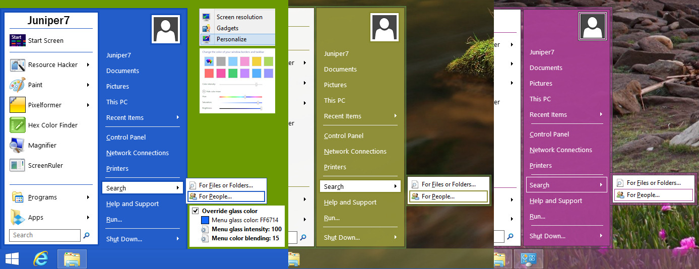 Adjust, pick, and save. This only changes menu color, not taskbar color.