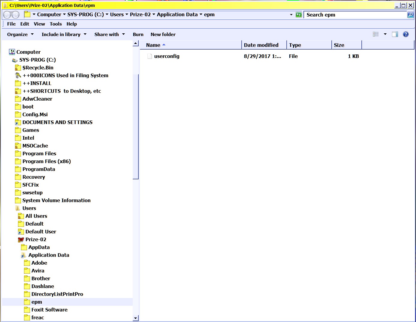 This is the result of clicking a link to the folder "epm" on my desktop.