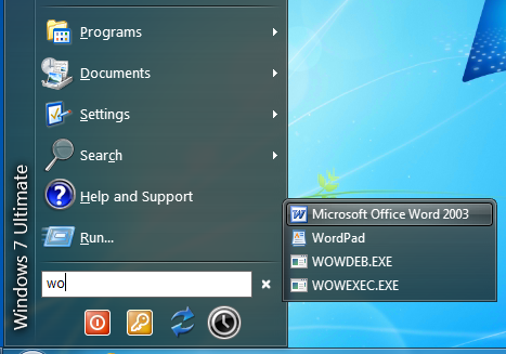 Search in the start menu