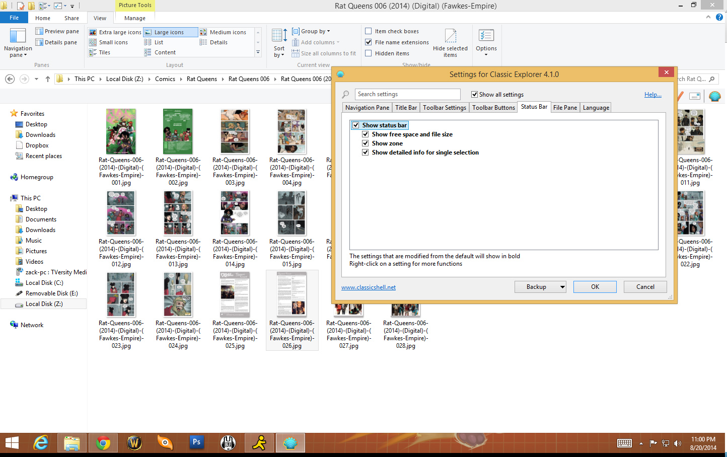 Sorry for reviving this -- but how do you do this same procedure in Windows 10 or is the classic status bar for Windows Explorer gone for Windows 10+Classic Shell?